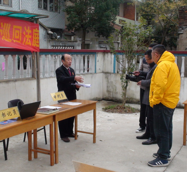 11月23日,我院王家河人民法庭在王家河街玉芝村巡回开庭审理了一起机动车交通事故责任纠纷案件。因原告年逾七十,且腿部受伤,行动不便,为方便当事人诉讼,王家河法庭决定到原告村委会就近开庭。湖北经视“法治最前线”栏目组对巡回开庭进行了采访,院党组成员、副院长杨三九和王家河法庭庭长秦志奇分别就我院巡回审判工作进行了介绍。